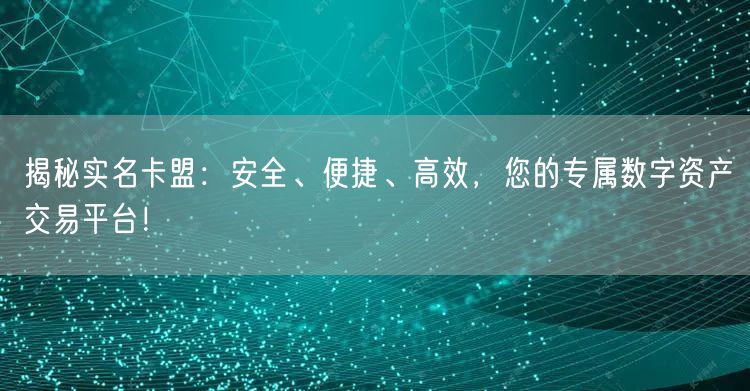 揭秘实名卡盟:安全、便捷、高效,您的专属数字资产交易平台!