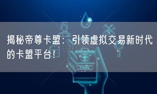 揭秘帝尊卡盟:引领虚拟交易新时代的卡盟平台!