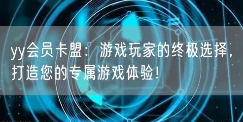 yy会员卡盟:游戏玩家的终极选择,打造您的专属游戏体验!