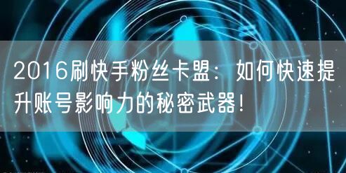 2016刷快手粉丝卡盟:如何快速提升账号影响力的秘密武器!
