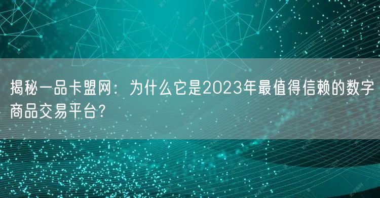揭秘一品卡盟网:为什么它是2023年最值得信赖的数字商品交易平台?